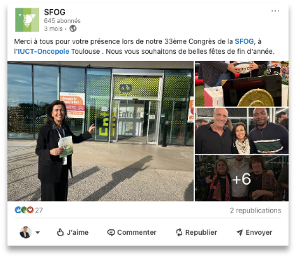 La S.F.O.G. comme son nom l’indique, est une sociéténationale qui regroupe les spécialistes impliquésdans le traitement des cancers gynécologiques(excepté le cancer du sein).